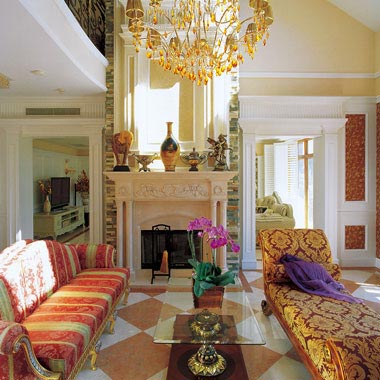 概要: 帝國(guó)風(fēng)格作為法國(guó)第一帝國(guó)時(shí)期的一種風(fēng)格,受拿破侖時(shí)代極力推崇的古羅馬英雄主義的影響,它顯示一種權(quán)威,以男性為中心,線條硬朗,氣派豪放。而新古典主義則添加了更多浪漫的元素。設(shè)計(jì)師張逸認(rèn)為,每所房子都有自己的特定性格,設(shè)計(jì)應(yīng)是主人性格、裝飾風(fēng)格與房子特征三方面的疊加?! 〗鹕狞c(diǎn)綴讓客廳頗為華貴。而壁爐兩側(cè)的自然石材,增加了壁爐的趣味和空間的輕松感。