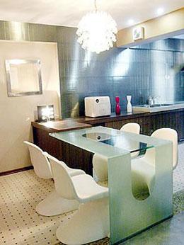 建議三:留出足夠回轉(zhuǎn)空間 餐桌椅在開放式廚房間的擺放,必須注意要留出烹飪操作空間,當(dāng)餐椅拉出餐桌時,其椅背距櫥柜要在一米以上,而一般的餐桌椅以一臺四椅為例 至少要占2米的寬度,再加上櫥柜的進深,就要求開放式廚房的長或?qū)捯贿呏辽僖?.6米以上。