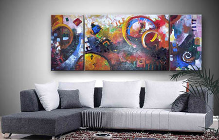 二、色彩上和室內(nèi)的墻面家具陳設(shè)有呼應(yīng),不顯得孤立。如果是深沉穩(wěn)重的家具式樣,畫就要選與之協(xié)調(diào)的古樸素雅的畫。若是明亮簡(jiǎn)潔的家具和裝修,最好選擇活潑,溫馨,前衛(wèi),抽象類的。