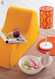 3 這個(gè)精致的沙發(fā)椅具有優(yōu)美的曲線,同時(shí)也很符合人體學(xué)原理,與臺(tái)燈也很相配。不同黃色的組合和各種曲線的構(gòu)造給人柔美舒適之感。