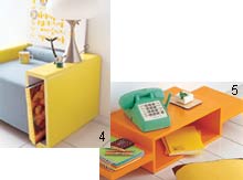 4 這是一個(gè)非常有酷感的沙發(fā),檸檬黃與灰色搭配出洗練透亮的感覺。當(dāng)然這款造型奇特的臺(tái)燈也功不可沒,沙發(fā)扶手還兼有茶幾和儲(chǔ)物的功能。