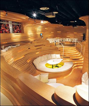 初次走進(jìn)SongClub的人多少會(huì)有些迷惑,這個(gè)充滿藝術(shù)感的空間從設(shè)計(jì)感覺上更像一個(gè)室內(nèi)的山地梯田——層層疊疊的起伏充滿動(dòng)感。