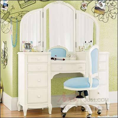 梳妝臺(tái)屬不常用家具,小些即可,而梳妝鏡大些則可開闊視野,“擴(kuò)大空間”,鏡子本身又不多占地方。