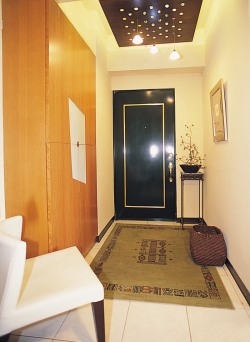 省錢要點(diǎn):運(yùn)用造型天花板、間接光源及3盞小吊燈,地面再放張地毯,阻擋戶外的泥沙,門旁邊放張高幾,上面再放置盆栽,就可營造出玄關(guān)的氣氛。雖然比一般平面的天花板來得貴,但相較于玄關(guān)柜還是比較便宜。