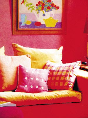 金黃色令人聯(lián)想起秋天豐收的稻田、成熟飽滿的瓜果,因此想在家中添一份豐收歡慶的感覺,金黃色可是首選。一般而言,金黃色給人強烈的視覺沖擊力,適宜用柔和的白色去調和。在家具設計中,古典歐式家具較多運用金黃色,營造豪華浪漫的氣氛??梢詫⑾奶焐嘲l(fā)上的淺藍色沙發(fā)套換上一件金黃色的“新衣”,再隨意地放上幾個紅色或者紫色的靠枕,平添一層秋日的暖意。又或者撤下擺放在餐桌上的小花籃,換上一盤造型逼真的水果擺設,將豐收的喜悅帶到餐桌上。代表秋天的花卉品種有向日葵、波斯菊等,將它們與青黃斑駁的樹葉放在一起,同樣可以為家居帶來鮮活的秋天色彩。