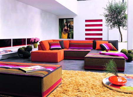 1.本季大熱的沙發(fā)椅和軟墊,將坐姿降低到與臥床無(wú)異,鮮亮豐富的色彩讓人坐上去心情也跟著開(kāi)朗起來(lái)。面料叫做Mah Jong,源于中國(guó)的“打麻將”,每個(gè)模塊就如同棋盤上的一兵一卒,任由擺弄。