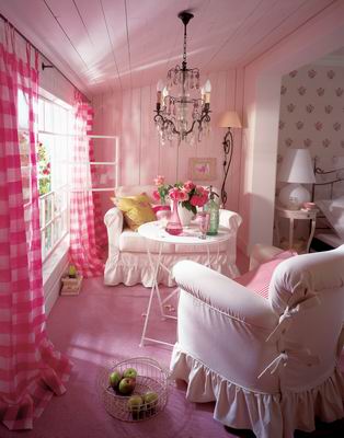 粉紅色:給人以溫暖、放松的感覺,適宜在客廳里使用。如地板用柔和的粉紅色,然后再選用同色的布藝靠墊以及有粉紅色印花的窗簾,在白色的沙發(fā)、米黃色墻的襯托下,再加點(diǎn)兒淡藍(lán)色,就會(huì)形成花壇般的羅曼蒂克格調(diào),頗適合年輕人的品位。