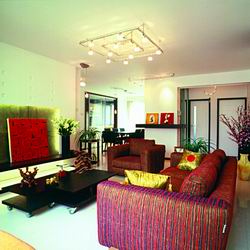 酒紅色:酒紅色就是葡萄酒的顏色,那種醇厚與尊貴會(huì)給人一種雍容的氣度、豪華的感覺,所以為一些追求華貴的人所偏愛。沙發(fā)用酒紅色,或在會(huì)客區(qū)選一塊酒紅色的地毯,會(huì)使客廳富麗堂皇。但為不使這種強(qiáng)烈的色調(diào)過于擴(kuò)張,造成視覺疲勞,可以選用一些黑色的家具,以形成對(duì)比。墻面選用明亮的米色,加上一點(diǎn)兒藍(lán)、芥辣黃的襯托,會(huì)使豪華的格調(diào)中增加一些優(yōu)雅與平易。