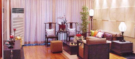 傳統(tǒng)中式裝修中的方圓、鏤空木窗是最典型的設(shè)計(jì),也是李聿最避之唯恐不及的老氣設(shè)計(jì)。李聿在英國呆了6年,思想中有很多現(xiàn)代元素,但讓他念念不忘的還是中式條案、紗燈。設(shè)計(jì)師應(yīng)李聿要求只采用中式風(fēng)格家具來營造中式氛圍,像搭積木一樣,變出了一個(gè)中式韻味很濃的家來。