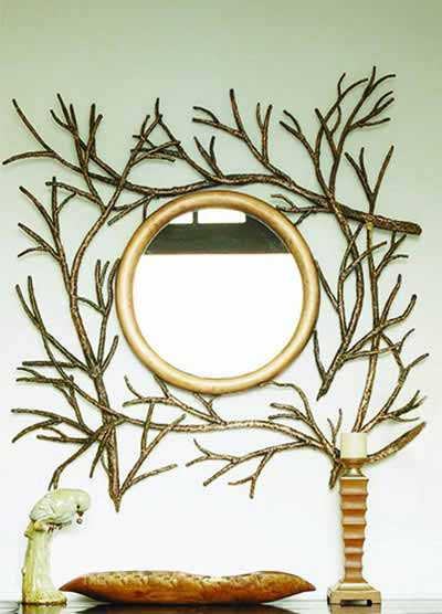 用鏡子做點(diǎn)綴,素凈的顏色,簡(jiǎn)潔的設(shè)計(jì),無一不顯示出主人的硬朗與陽(yáng)剛的個(gè)性,過多的裝飾無疑會(huì)破壞這里的氣氛。一面清冷的鏡子有時(shí)候就是最好的點(diǎn)綴。而另外一種,鏡子是裝飾的主體,會(huì)營(yíng)造不一樣的童話感覺,就像圖中,將圓鏡和樹枝這兩件極為普通的材料搭配在一起組合出墻面的裝飾物,讓人聯(lián)想到在童話故事中才會(huì)有的魔法鏡。