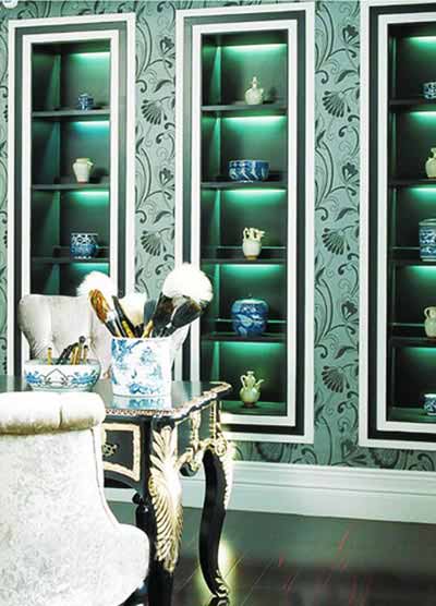 根據(jù)房間整體顏色,選擇裝飾墻壁的壁紙,是保持整個(gè)房間風(fēng)格一致的要素。大面積的鋪貼會(huì)讓本來不夠?qū)掗煹膲Ρ陲@得更加狹窄,用墻紙規(guī)則地將整塊墻壁劃分成幾部分,馬上使整面墻壁活潑起來?,F(xiàn)在還有一種專門的游戲墻紙,包括拼詞、迷宮等游戲形式。這種設(shè)計(jì)讓墻紙這種原本非常靜態(tài)的生活元素,變得生動(dòng)而富于變化。