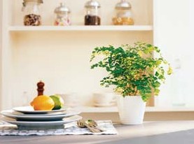 現(xiàn)代人愈來愈重視綠化,利用植物來裝飾家居,不但便宜實際,而且對家人的健康有一定好處。一個花樽,加點清水,將鮮花放在茶幾或餐桌上,能增添溫馨氣氛,所散發(fā)的香味更直接刺激視覺和嗅覺,增進食欲。夏天放百合、滿天星,冬天放玫瑰、太陽菊,為家居增添時令氣氛。