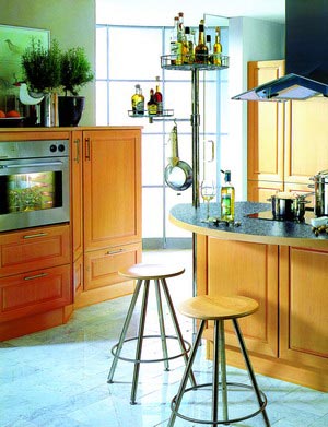 風格多樣的餐臺、靈活搭配的擱板與櫥柜、水池、灶臺充滿創(chuàng)意地隨意組合,摒棄傳統(tǒng)餐桌的單調(diào)呆板,一物多用的餐桌組合帶給人更多的生活情趣。