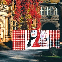 上個(gè)世紀(jì)60年代風(fēng)行美國的波普藝術(shù)是大眾文化與商業(yè)美術(shù)風(fēng)格中最具影響力的藝術(shù)流派。就詞義而言,波普就是大眾、流行的意思,它以流行的商業(yè)文化形象和都市生活中的日常事物為題材,采用的創(chuàng)作手法也往往反映出工業(yè)化和商業(yè)化的時(shí)代特征。Werner Berges設(shè)計(jì)的“藝術(shù)邊緣2005”壁紙就顯示了純正的波普藝術(shù)。畫面是一個(gè)笑得夸張而奔放的時(shí)尚女郎,以剪影的手法將頭像處理得簡單明了,在色調(diào)上或以濃度較高的紅、白、黑為主,或以明亮的藍(lán)、白、黃為主,帶有強(qiáng)烈的波普風(fēng)格和視覺沖擊力。這些壁紙本來都是用作戶外展示背景的,但因?yàn)閳D案很有個(gè)性,很多時(shí)尚人士會(huì)選擇用到室內(nèi)背景墻。