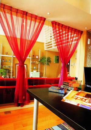這套房子已經達到中等戶型的上限——150平方米,客廳更是挑高達6米,這為設計師展示帶來了極大空間。樓梯下的書房采光不是很好,主人把整面墻換上了玻璃后,視線的擴展讓狹長的客廳不那么狹長了,書房也更明亮。不想相互打擾的時候,拉上紗簾就可以。這種設計是不是讓你眼前一亮呢?