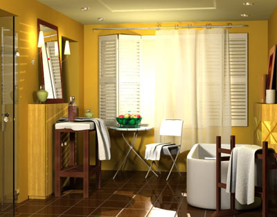 浴室中最理想的色調(diào)是粉色系,例如:粉紅、淡綠、淡藍(lán)及桃紅色等。其次則是奶油色系,或是一些中性色,如:黑色及白色。裝飾物及毛巾等配件則可選擇強(qiáng)烈的對比色系。墻面的處理方式應(yīng)該是盡可能地富有想像力,要不就盡量求簡。在水泥墻上涂上一層油漆會使浴室增添暖度,而馬賽克玻璃磚,刻花磁磚,甚至板舌以及凹槽處理都能使墻壁的設(shè)計(jì)更為有趣。