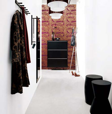 很多公寓的內(nèi)部空間結(jié)構(gòu),在相對(duì)的兩個(gè)房間之間由一個(gè)走廊或通道連接,這處留白不妨好好加以利用,擺放尺度適當(dāng)?shù)募揖?,方便主人存放外出衣物或?jīng)常取用的零碎物品。玄關(guān)家具風(fēng)格不必過(guò)于局限,但是這個(gè)位置也決定了你挑選的眼光,既要與居室內(nèi)整體風(fēng)格協(xié)調(diào)搭配好,最好也有一些新意。