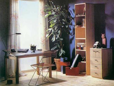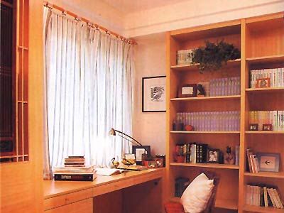 面積充裕的居室中,可以獨(dú)立布置一間書房,面積較小的居室可以辟出一個區(qū)域作為學(xué)習(xí)和工作的地方,可用書櫥隔斷,也可用柜子、布幔等隔開。