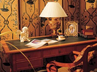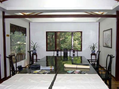 靠窗的書桌,要注意窗外十公尺以內(nèi)其它房屋射入的尖角,尖角距離越遠(yuǎn)影響越小,越近影響越大。寫字臺上的工作必需用品,也是書房的裝飾陳列品。如文房四寶的安置,筆筒、筆架的擺放,無不具有很強(qiáng)的觀賞價值且具有裝飾性。