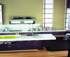 在現(xiàn)代廚房設(shè)計中,水槽的功能被明顯拓展,如水槽和櫥柜相接的地方被開拓出一塊工作區(qū),使水槽連帶了儲物功能。
