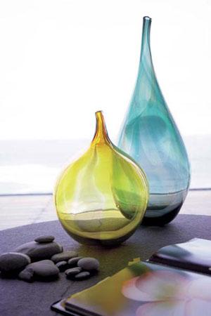 1. 造型時尚的玻璃器皿和海邊隨處可見的石子被擺放在房間一角,處處體現(xiàn)了設(shè)計者的匠心獨具。