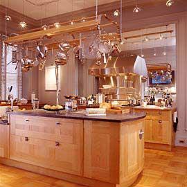 廚房:廚房在美國人眼中一般是開敞的(由于其飲食烹飪習(xí)慣),同時需要有一個便餐臺在廚房的一隅,還要具備功能強大又簡單耐用的廚具設(shè)備,如水槽下的殘渣粉碎機,烤箱等。需要有容納雙開門冰箱的寬敞位置和足夠的操作臺面。在裝飾上也有很多講究,如喜好仿古面的墻磚、櫥具門板喜好用實木門扇或是白色模壓門扇仿木紋色。另外,廚房的窗也喜歡配置窗簾等。