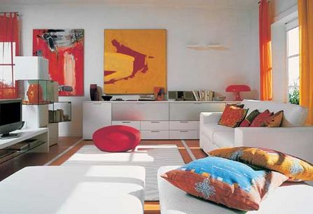 另外的問題是統(tǒng)一色彩基調(diào)。背陰的客廳忌用一些沉悶的色調(diào)。由于受空間的局限,異類的色塊都會破壞整體的柔和與溫馨。