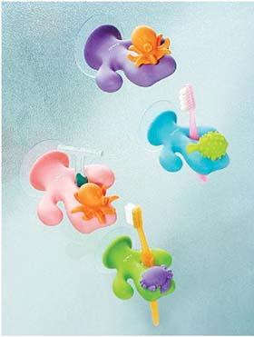 藍(lán)色、綠色、紫色、黃色……滿眼霓虹,再看看上面可愛的小螃蟹、小章魚,各式表情鮮活的海底小生物們讓你心癢癢,恨不得趕緊把它們帶回家裝點(diǎn)自己枯燥的浴室,讓你在家中就能感覺到宜人的海洋氣息,它們讓你覺得刷牙、剃須都是一天中難得的好時(shí)光。將各種的顏色排排坐,還可以管理家人的牙刷,浴室的墻面也變得格外富有生機(jī)!