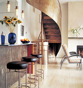對(duì)于水平面積有限,豎向尺度卻較大的空間,最常用的是分層處理的方式。房間分層設(shè)置,中間以坡度較大的樓梯或轉(zhuǎn)梯相連。無形中成倍地?cái)U(kuò)大了有效的使用面積,且使空間富于變化。