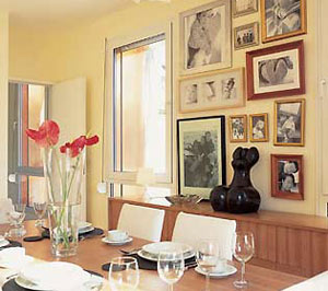 兒時的黑白照、過去的老城墻等等都會成為我們永恒的主題。用黑白照片布置居室,成本相對來說要便宜得多,內(nèi)容也十分廣泛,只要你認為有意義的東西都可入照,而且制作也相對簡單。如果你手頭還保留著祖輩時代的照片,不妨將它們重新印放,布置在客廳或書房的墻上,可表現(xiàn)懷舊的情調(diào),但要注意單張照片不能放得太大,否則有壓抑感;也不要幾張照片放在一個畫框里,最好一張畫框中放一張照片,組合成一個畫面,也不宜掛在主墻上太一目了然的地方。