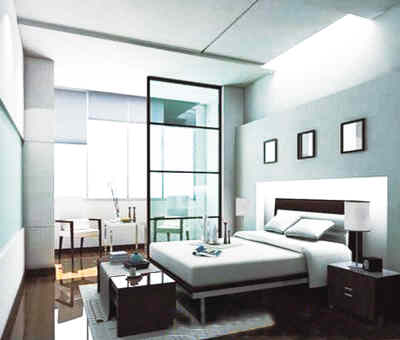 方案三:透明衛(wèi)浴。主臥室是私密空間,但若是將屋內(nèi)浴室用玻璃圍合,既擴大了主臥室的空間感,又在私密的空間里營造出了欲說還休的氣氛。