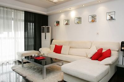 當然純用黑與白無論如何都是一項大膽的舉措,譬如窗簾,幾乎不曾見過別家敢于用黑白兩色,而林琳家客廳就是如此:白色的細紗,配黑色的薄棉布,隱隱約約透入外面的光線,卻也并不顯得如何肅穆,反倒有一種輕盈又潔凈的感覺。此外又引入正紅色作為點綴,幾個靠墊、一沓餐巾紙,略略幾處,便足以柔化空間的冷硬之感。