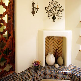 馬賽克可以說是最小的裝修材料,造型上不再局限于方形與長方形,正因如此,它們的組合可以千變?nèi)f化,基于設(shè)計上的創(chuàng)新,人們將不同色彩、不同規(guī)格、不同形狀的馬賽克加以組合,體現(xiàn)出個性的需求。比如在一個平面上,同色系深淺顏色的過度、不同顏色拼出的圖案、為瓷磚等其他裝飾材料做腰線進行點綴等,都是表現(xiàn)馬賽克拼貼的成功應(yīng)用。對于房間曲面或轉(zhuǎn)角處,馬賽克更能發(fā)揮它身材小的特長,能夠把弧面包裹的平滑完整。