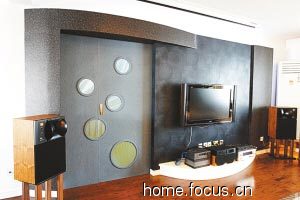 電視墻與臥室門連成一個背景墻,便于沙發(fā)擺放,在視覺上也很協(xié)調(diào)統(tǒng)一。
