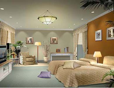 臥室中“三角形”的裝飾物過多,主不祥;床頭掛書,以山水花草為佳,忌以老虎、蟲獸為背景;床上忌吊蘭花、緞帶花及大吊燈,否則影響居住者的健康。
