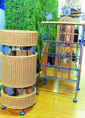 目前家裝市場上編制草制品所使用的材料,一般都是柳條、蘆葦和竹子,可以說是綠色環(huán)保的佳品。雖然材料都是一些植物,但是大可不必擔(dān)心它的耐用性。由于工藝的改進,現(xiàn)在的草器和藤器除了強調(diào)裝飾性之外,實用性也大大加強了。像一件蘆葦編制的小書架,放二三十斤重的書完全不成問題。一般的草具顏色都比較淺,大多是草的本色、淡黃或米色。這樣的色調(diào)自然給人一種清新爽潔的感覺。但它同時也非常易臟,一點浮土就會顯現(xiàn)無余。所以,要保持這種清新的感覺,經(jīng)常擦拭草具是非常重要的。在清潔時,切忌不要用濕布,只要干凈的干布把浮土撣干凈就可以了。