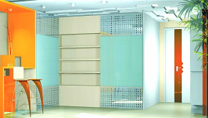 在餐廳里的休息室或臥室里的衣帽間的門通常利用家具來(lái)隱形,一般用多寶格、酒架或衣柜體作為隱形門,柜體其中的一小部分做成門,打開(kāi)后直接進(jìn)入??梢院芎玫貪M足兩三個(gè)人在休息室談話或去衣帽間更換衣服。這種多寶格、酒架或柜體在外觀上與外面的空間融于一體,而在里面卻別有洞天。