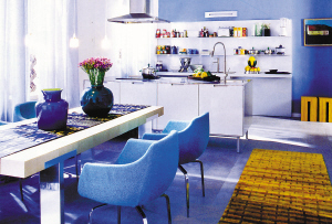 整理得一塵不染的餐廚空間,需要用少量鮮花和鋁質(zhì)品略作裝點(diǎn),給湛藍(lán)的環(huán)境增添幾樣亮眼的顏色。在利落的空間布置下,清涼感愈見純粹。在餐廳掛上一幅黑白灰裝飾畫,可以提升空間情調(diào)。在經(jīng)常行走的餐廳與廚房通道之上,鋪一塊如沙灘般的米黃色地毯,表現(xiàn)出居家溫馨感,空間設(shè)計(jì)因而變得更加完整。