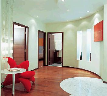 中國(guó)的傳統(tǒng)大宅院入門(mén)之處均設(shè)有大型玄關(guān),而現(xiàn)代都市的住宅普遍面積狹窄,若再設(shè)置傳統(tǒng)的大型玄關(guān),則明顯會(huì)感覺(jué)空間局促,難以騰挪。所以折衷的辦法是用玻璃屏風(fēng)來(lái)作間隔,這樣既可防止外氣從大門(mén)直沖入客廳,同時(shí)也可令狹窄的玄關(guān)不顯得太逼仄。