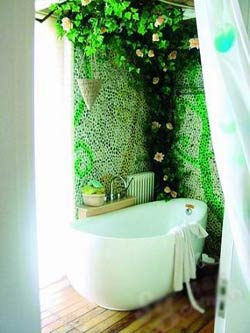 鵝卵石鋪就的光滑墻面、圓潤的全裙落地按摩浴缸、入墻式龍頭和花灑,加上仿真藤蔓花架,令你仿佛置身于水清沙白的海邊天際。利用通透飽滿的日光變化使身心和諧,達(dá)到天人合一的境界,更將洗浴過程中的舒適享受推向了極致。