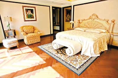 休閑區(qū)臨江而設,透過整面落地窗能欣賞到珠江兩岸的美麗風情。工作之余,坐在舒適的沙發(fā)上,享受一下浪漫的午后時光,泡上一壺英式紅茶,與愛人傾談,別有一番溫暖和甜蜜。西班牙Vidal Grau品牌的桌椅造型優(yōu)美,如果合在一起,即是一個玫瑰花杯型,如果再仔細看看,還能在椅子上看到玫瑰花的紋飾,華麗異常。