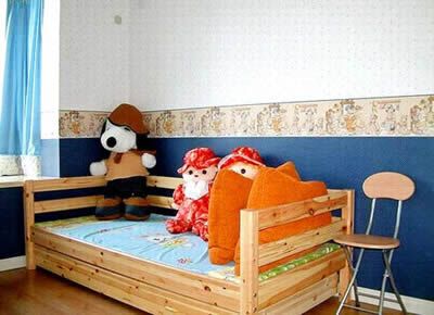 壁紙本身的色彩與圖案,視小朋友的性別、年齡與喜好而選擇,粉紅、粉紫系適合小女生,小男生則采用水藍色調(diào)的居多,家具的花色只要與壁紙同色系,就很容易搭配。
