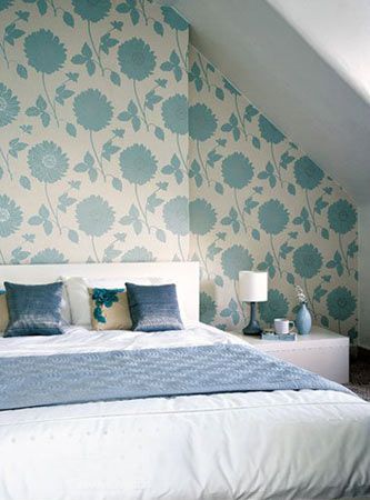 白底淺藍(lán)色向日葵圖案的墻紙賞心悅目。床架和儲(chǔ)藏格均來自宜家,被子和床罩自然也是清新的淡藍(lán)色。床頭藍(lán)色小靠墊和藍(lán)花小靠墊隨意擺放,窗邊小桌上,藍(lán)色底座白色燈罩的臺(tái)燈與花瓶繼續(xù)將藍(lán)色進(jìn)行到底,藍(lán)色成為整個(gè)房間的主宰,既淡雅又充滿情趣。