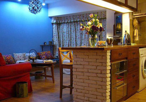 特別是對(duì)于那些小戶型里的小廚房來說更是如此,否則即使下再大的功夫、投入再多的金錢,也未必能擁有一個(gè)時(shí)尚而又舒適的生活空間。通常而言,要裝修成開放式的小廚房應(yīng)具備以下條件:業(yè)主是那些喜歡吃西餐、在家中開火少的家庭,或者是生活節(jié)奏比較快的年輕一族;廚房和客廳面積都較小,將廚房與客廳打通連在一起會(huì)使空間加大,顯得房間更加寬敞。否則即使業(yè)主喜歡開放式的廚房,也最好能用玻璃門來做隔斷,而不要一味地“開放”。