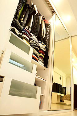 裝修要省錢,一定得要從木作動腦筋。一般木作柜子的計價方式,除了木工施作柜體及五金配件的價格外,還包括了門片油漆的費用。為了省錢,設計師便用請木工釘作作柜子的桶身,再用系統(tǒng)柜的門片,這樣不但省了門片油漆的費用,再加上系統(tǒng)柜的價格本來就比木作柜子便宜,就可以省下不少錢。