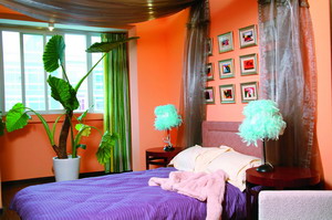 高榕說 臥室的床品顯得有些單調。辛苦一天的人都想立刻撲在床上睡個好覺,而床就應該讓人有一看到就想撲上去的欲望。如果給它加上兩個長枕頭,四到六個大靠包,紗幔外加一頂天鵝絨的厚帳幔,顏色變得暖暖的,有一種曖昧的慵懶氣息在里面,好像歐洲城堡里的床,一定會讓女孩子做個美美的夢。