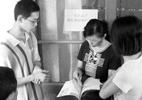 在考場門口,家長們則圍住了港大負(fù)責(zé)咨詢的學(xué)生志愿者。如何申請獎(jiǎng)學(xué)金以及各類獎(jiǎng)學(xué)金的額度是家長們最關(guān)心的問題。