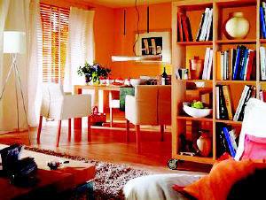 如果回到家后,還必須在書(shū)房里挑燈加班工作的話,書(shū)房除了必須采用能使人靜心柔和的格調(diào)外,也需要快樂(lè)、樂(lè)觀和充滿了生機(jī)的顏色來(lái)掃除抱怨與疲勞,迸發(fā)工作的**與靈感。明亮活躍的橙色正蘊(yùn)含了這種歡快愉悅、樂(lè)觀向上的情感。