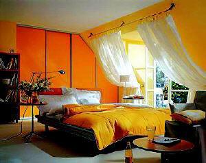 顏色除了能簡(jiǎn)單的美化家居環(huán)境,還有調(diào)節(jié)人們心情的功能。橙色給人清新快樂(lè)的感覺(jué),想讓單調(diào)乏味的生活增添活力,讓郁悶的心情開(kāi)朗明亮起來(lái),你可以在床上放一只色彩溫暖橙色的抱抱熊,在床頭點(diǎn)綴一些可愛(ài)的裝飾品。除此之外,橙色還有性感撩人的視覺(jué)感受。整面夢(mèng)幻般的橙紅色的裝飾墻,陪襯樸素的本白色窗簾,都是不錯(cuò)的搭配選擇。