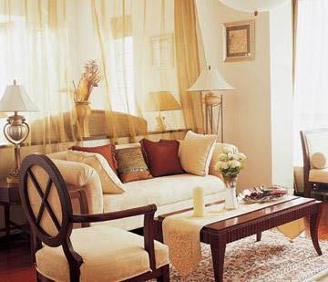 在幾十平米的空間里,人們最不敢嘗試的恐怕就要屬歐式的家居風(fēng)格了。因為提到歐式,大家立刻都會想到挑高7-8米的天花上垂下的巨型水晶燈,寬大厚重的沙發(fā)、躺椅,金碧輝煌的墻壁。隨著新浪漫主義的回歸,一些30歲左右的人們又重新開始迷戀歐式風(fēng)情??墒?,面積較小的房子里如何容納這么多的裝飾元素,怎樣在窄小空間里營造歐式氣氛?